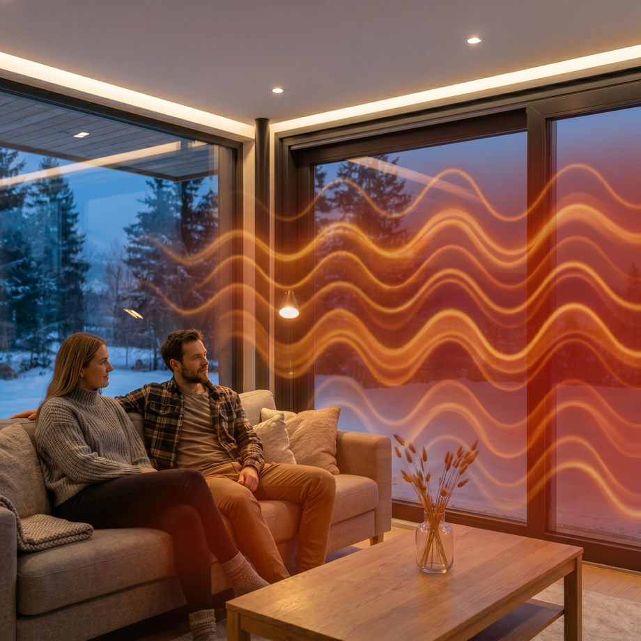 Ao contrário dos sistemas de aquecimento convencionais que aquecem o ar (convecção), o LumiHeat® emite calor radiante directamente para os objectos e pessoas no compartimento. Esta tecnologia transforma a superfície envidraçada, habitualmente o ponto mais frio de uma divisão, numa fonte activa de aquecimento, garantindo uma distribuição térmica homogénea e eliminando o efeito de "parede fria".