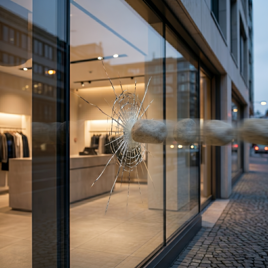 Em ambientes que exigem um nível de proteção crítico, o vidro deixa de ser um mero elemento de transparência para se tornar um escudo vital. O LumiSafe+® foi desenvolvido com uma composição laminada de alta densidade, especificamente projetada para resistir a agressões intencionais e ataques com armas de fogo.